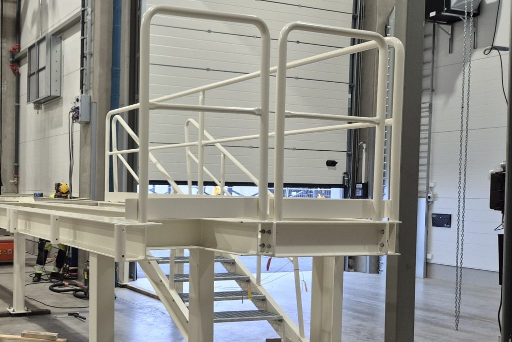 Terästukien päälle toteutettiin hoitotasot, portaat ja kaiteet, jotka mahdollistavat koneiden turvallisen käytön ja huollon. Rakenteet mitoitettiin kestämään teollisuusympäristön kuormitukset ja käyttövaatimukset.